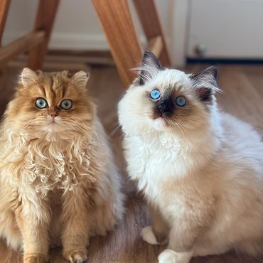 Size-wise, the boys can get pretty big — often in the 15 to 18 pound range — and even the girls are solid, usually around 14 to 15 pounds. Their personalities really help balance out a more playful mom, adding that calm, affectionate, mellow vibe. Depending on the match, some end up being full-on lap cats, while others are more the “next to you, not on you” cuddly type.