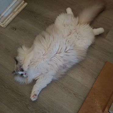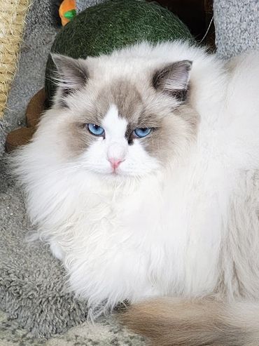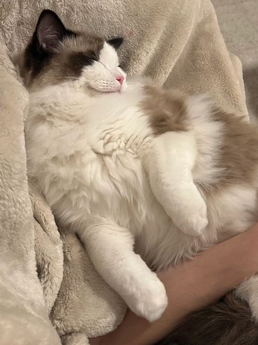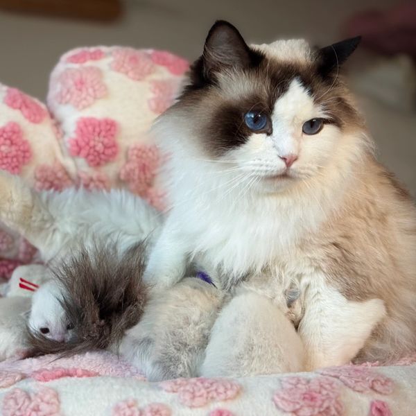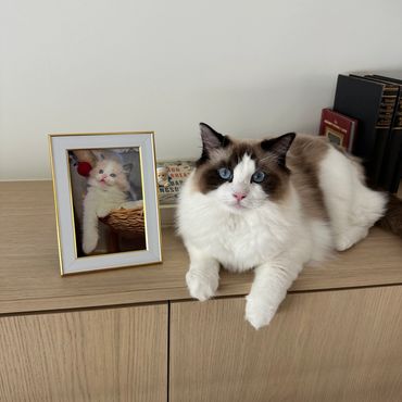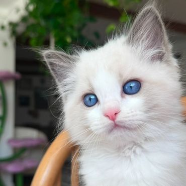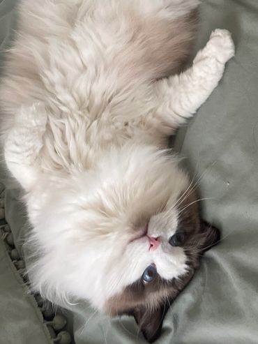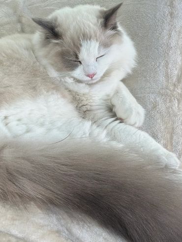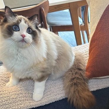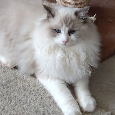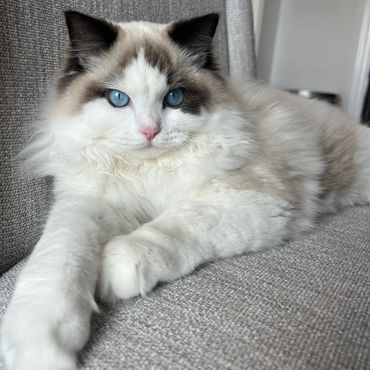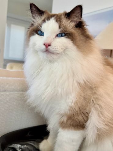 Victoria is an alpha girl who knows exactly what she wants! She’s always the first to climb into a guest’s lap and isn’t shy about letting me know when she needs attention. She embodies everything you could want in a Ragdoll—gentle, affectionate, and always purring.