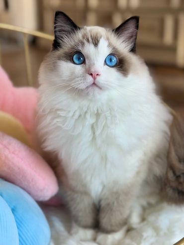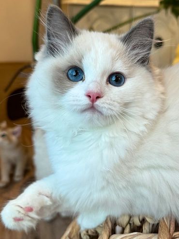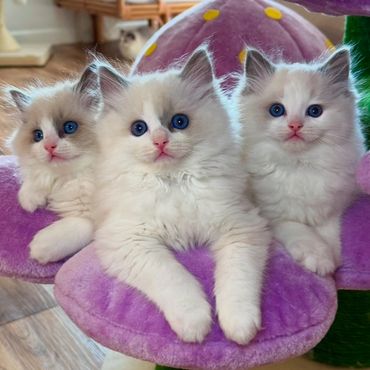 Victoria’s kittens are the ultimate puppy-like Ragdolls. They thrive on human companionship, happily snuggle 24/7, and want to be part of every moment of your day. They’re not the type to hide or stay aloof—they’re social butterflies who love to be the center of attention.